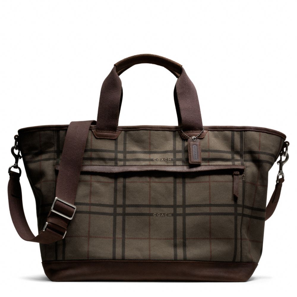 COACH F70934 - CAMDEN CANVAS TATTERSALL WEEKEND TOTE - GUNMETAL/FATIGUE-MULTI/BROWN - HANDBAGS