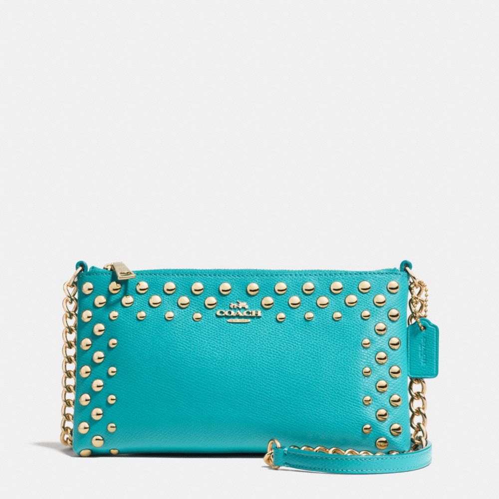 COACH F53140 - QUINN CROSSBODY IN STUDDED CROSSGRAIN LEATHER - LIGHT GOLD/CADET BLUE (click the link before for more detail)