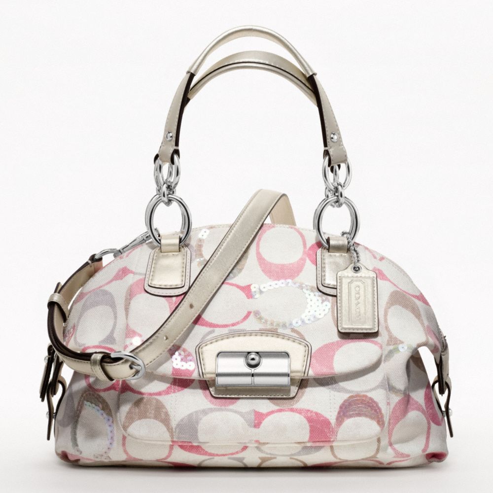 COACH F19338 KRISTIN EMBELLISHED SIGNATURE DOMED SATCHEL - SILVER/BEGONIA MULTI(click the link before for more detail)