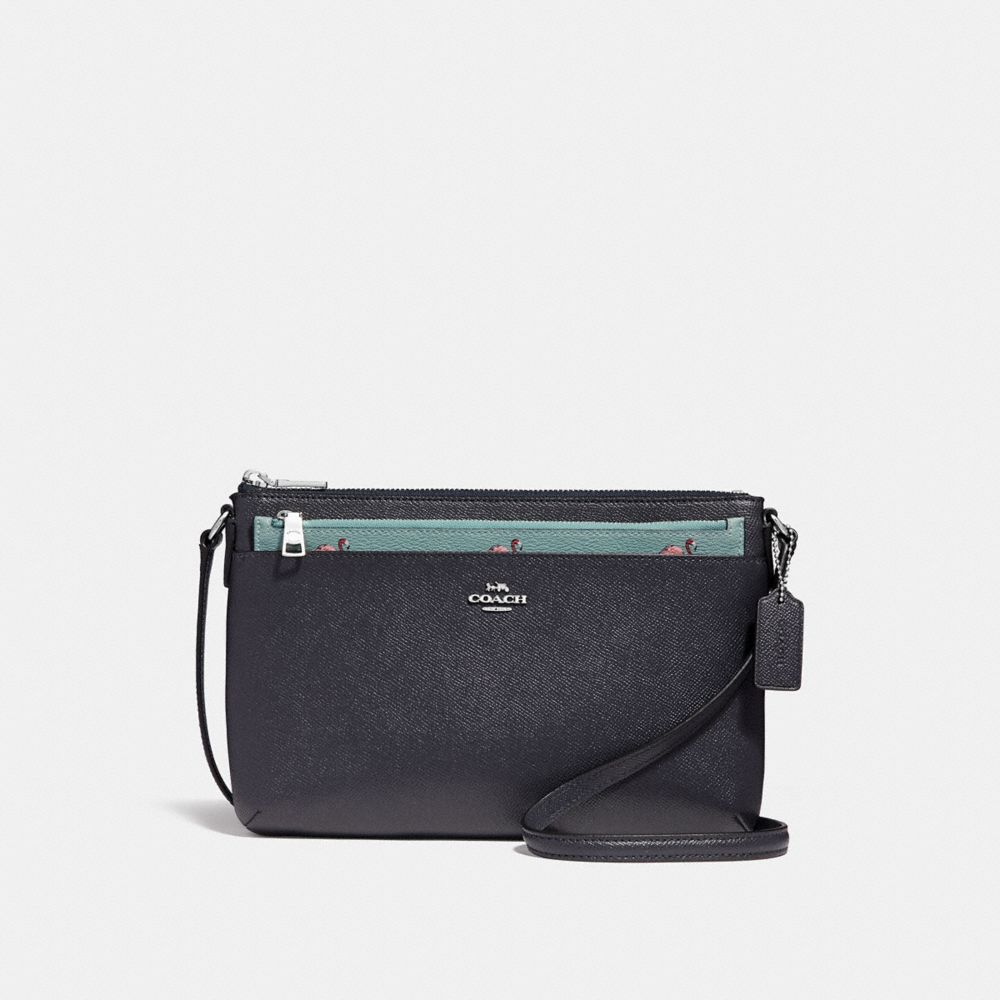 1. COACH f29556 - EAST/WEST CROSSBODY WITH POP-UP POUCH WITH FLAMINGO PRINT - SVNGV