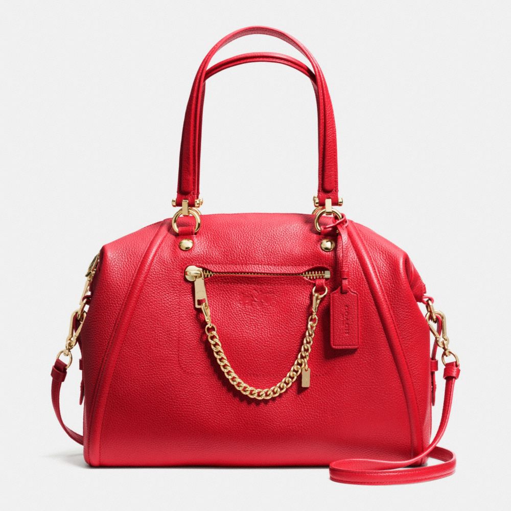 COACH F34362 - PRAIRIE SATCHEL WITH CHAIN IN PEBBLE LEATHER - LIGHT-GOLD/RED - HANDBAGS