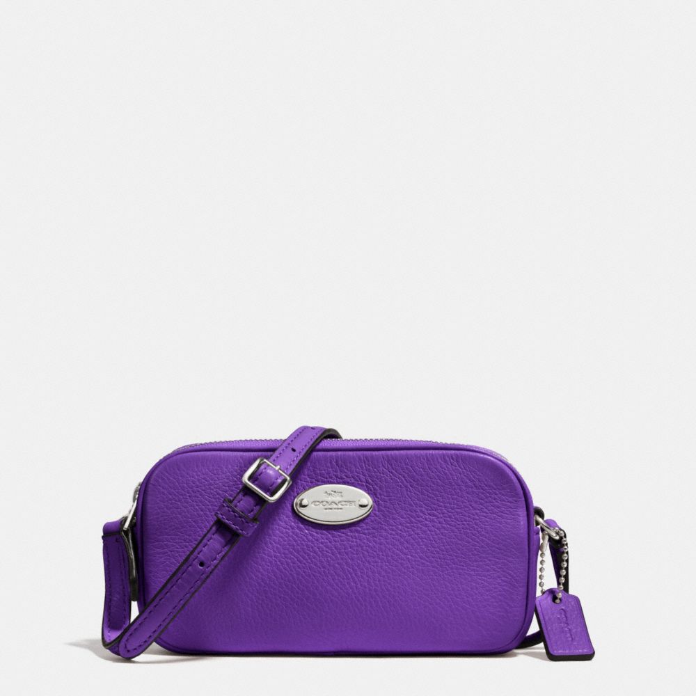 COACH F53372 - CROSSBODY POUCH IN PEBBLE LEATHER - SILVER/PURPLE-IRIS - HANDBAGS