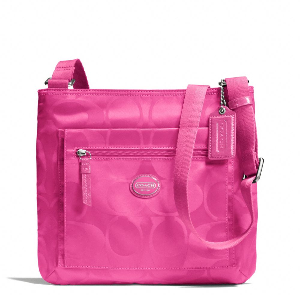 COACH F77408 GETAWAY SIGNATURE NYLON FILE BAG - SILVER/HOT PINK(click the link before for more detail)