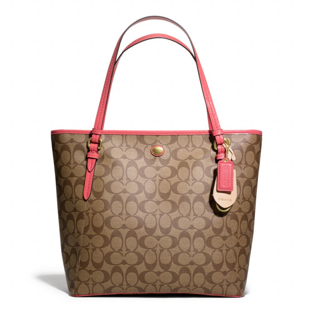 COACH F27348 PEYTON SIGNATURE ZIP TOP TOTE - BRASS/KHAKI/CORAL(click the link before for more detail)