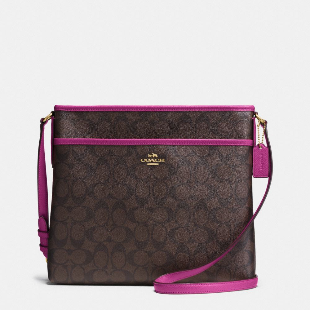 COACH F34938 - FILE BAG IN SIGNATURE - IMITATION-GOLD/BROWN/FUCHSIA - HANDBAGS