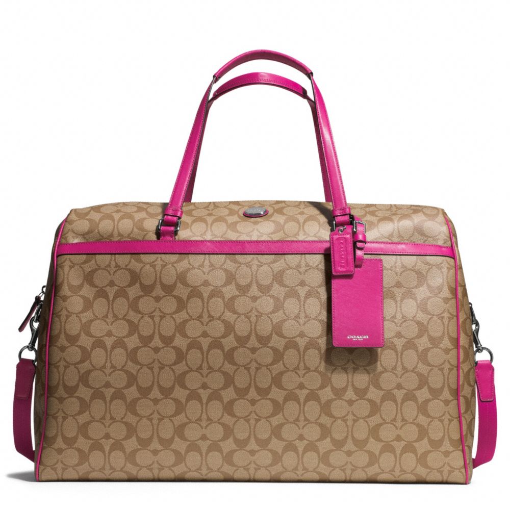 COACH F77599 - SIGNATURE COATED CANVAS LARGE BOSTON BAG - SILVER/KHAKI/RASPBERRY - HANDBAGS